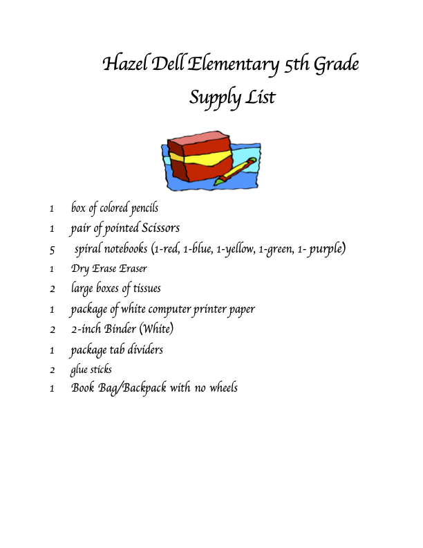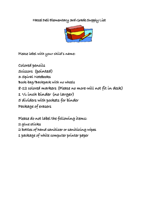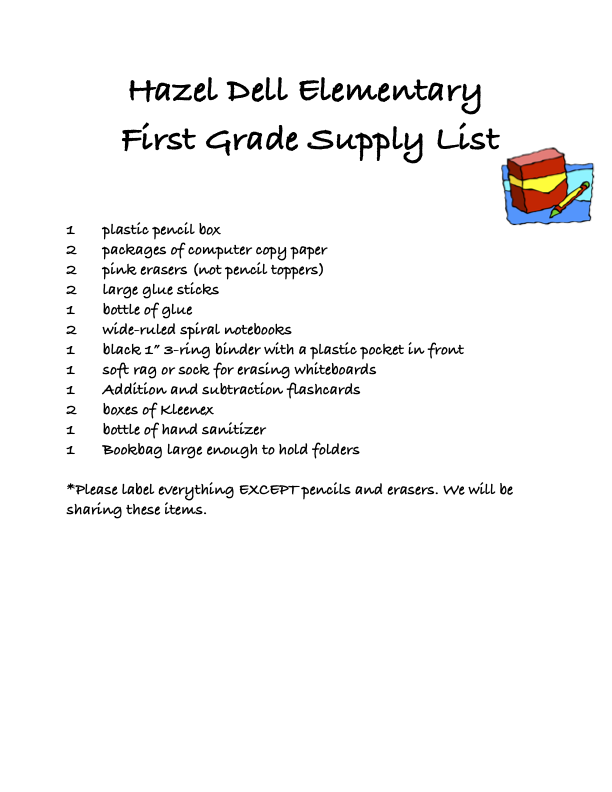 *Please label everything EXCEPT pencils and erasers. We will be sharing these items.